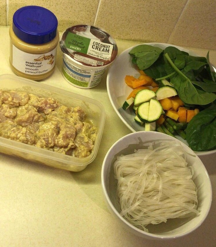 - Peanut butter chicken stir fry – I LOVE having a peanut butter chicken stir fry for tea. I get my peanut butter from either Waitress or Tesco and sometimes add coconut cream as well, so the chicken can be marinated. When I haven’t marinated any chicken i just add 2 teaspoons of peanut butter to the frying pan, whilst cooking. My favourite noodles are the thick Mama Vermicelli rice noodles – you can get them from most Sainsbury and Tesco stores