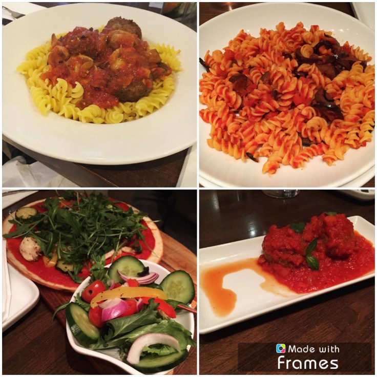 - Prezzo – they have a large gluten free menu and quite a few of the options are dairy free too! My favourite dish of theirs has to be their gluten free pasta with giant meatballs – definitely recommend this to anyone that plans on visiting Prezzo! They do great a great gluten free garlic pizza bread and full sized pizza and their penne alla norma is the BEST vegan dish I’ve had in ages!